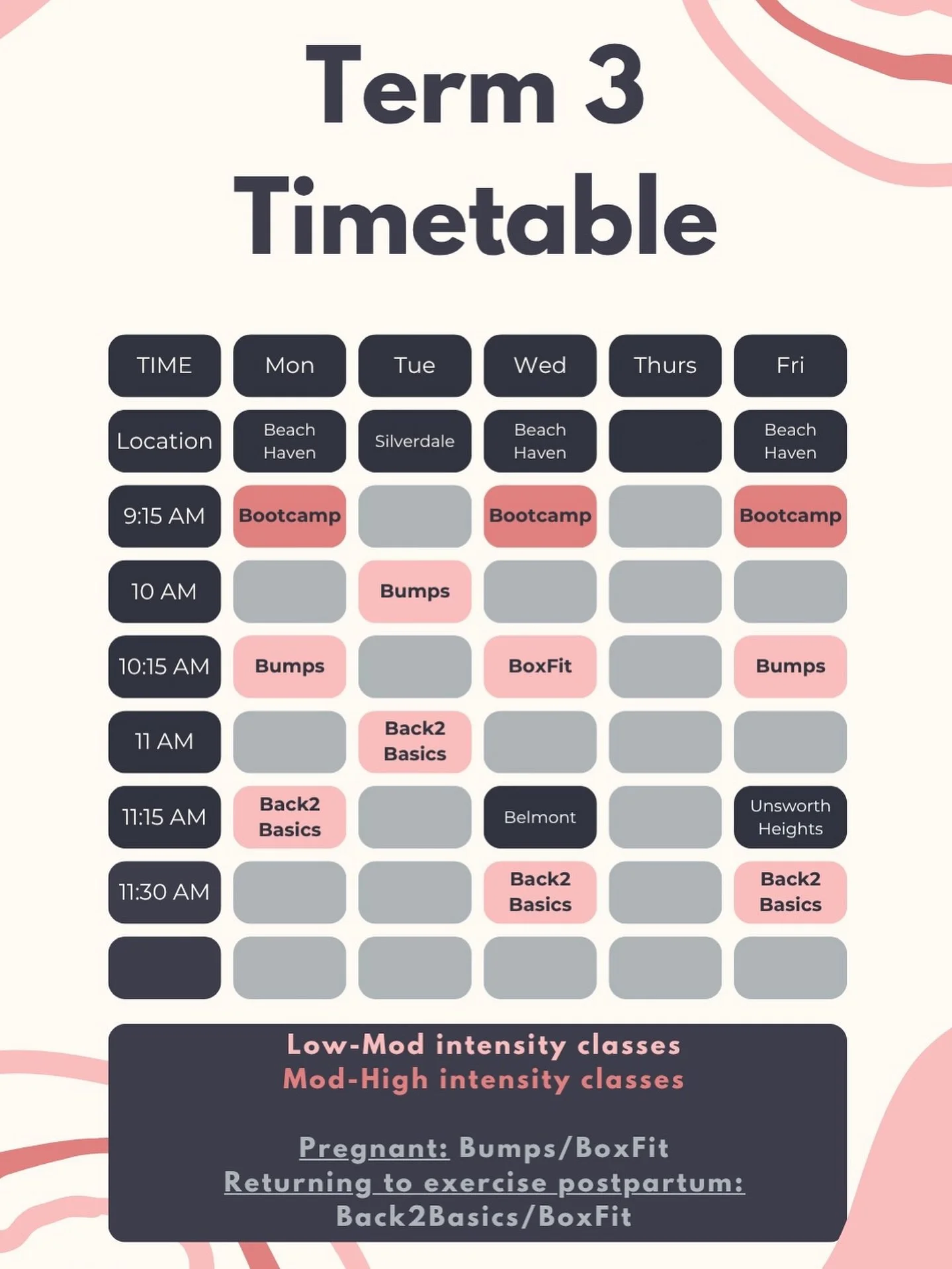 Please Note: This class is suitable for all mamas from 6 weeks postpartum with clearance to return to exercise from your GP or medical professional.